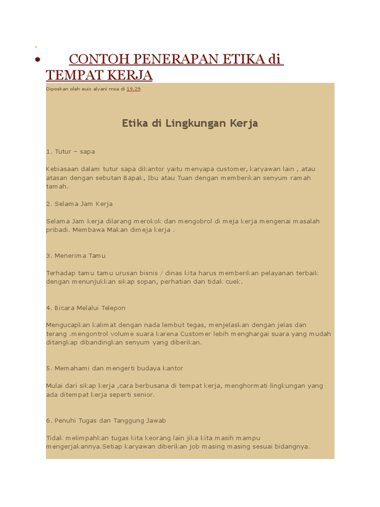Contoh Etika Profesional Di Tempat Kerja